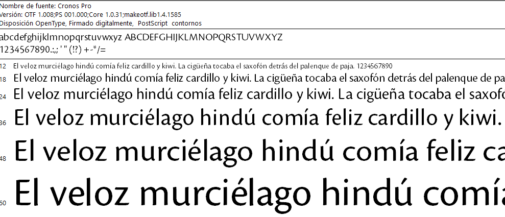CronosPro (familia) el 13.11.20 Obtener enlace Facebook X Pinterest Correo electrónico Otras aplicaciones Esta familia incluye versiones light, seminegrita, negrita, cursiva y cursiva negrita. Comentarios